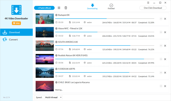 Step 5. The software will automatically start downloading 8K videos from YouTube. After the videos are downloaded, you can play them directly or convert them to whatever format you like.