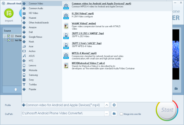In the drop down menu of “Profile”, you will see abundant of output choices for you. These include optimized options for Samsung, HTC, LG, Sony, Motorola, Huawei, ZTE and many other Android devices. Choose the one you need as the output.