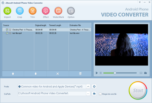 Jihosoft Android Video Converter provides you video editing features so you can edit the video before conversion.