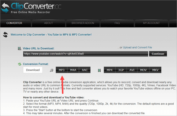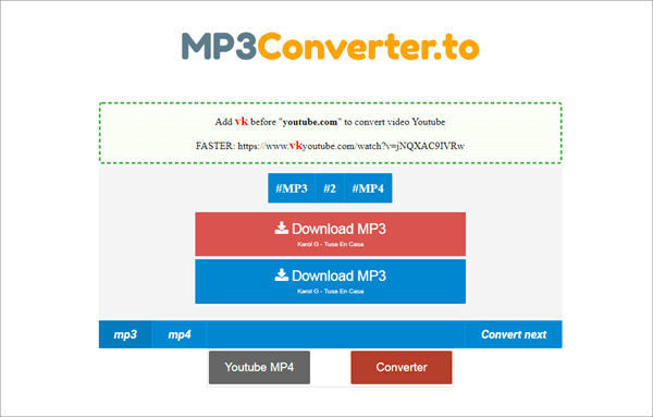 MP3Converter is a good online YouTube to MP3 converter. With this tool, you can download and convert YouTube videos to MP3 or MP4 format in seconds. It’s also very simple to use, you just need to paste the YouTube video URL into the box and choose the output format, then click the “Convert” button, and it will save the audio or video file to your device immediately.