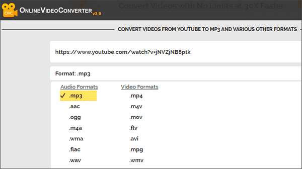 Online Video Converter is a great YouTube video downloader & converter. With it, you can quickly convert online or local videos to MP3, WMV, M4A, MP4, AVI, MPEG, MOV, FLV, 3GP, and other formats. Unlike other YouTube to mp3 converters, it has no limit on the number of files. After conversion, your files will be automatically deleted from their servers after a few hours, and no one can access them except you. The only limitation is that you can only upload files up to 2GB in size.