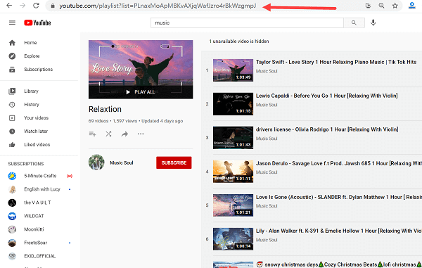 Step 2. Go to YouTube, find the video or playlist you want to convert to mp3, then copy its link address.