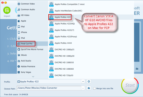 4. Final click “Start” to convert Canon VIXIA HF G10 AVCHD to ProRes for FCP on Mac OS