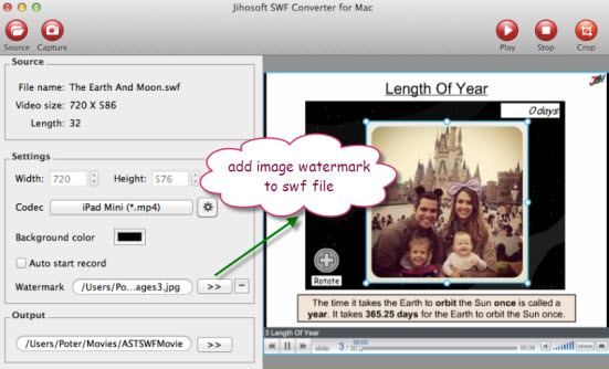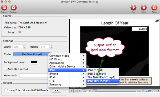 Jihosoft SWF Converter for Mac is one of the simple to use application that allows you to quickly convert SWF to iPad compatible H.264 or MPEG-4 format, while preserving the quality of the original video on Mac OS X. This SWF to iPad Converter works well with all recent iPad models including iPad, iPad 2, iPad 3, iPad 4 and iPad Mini. When the conversion is done, you can play and watch all your favorite flash games, animations or movies on iPad with no limitation.