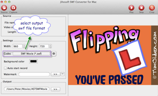Click “Codec” drop down menu and select “Flash SWF File” as the output file format.