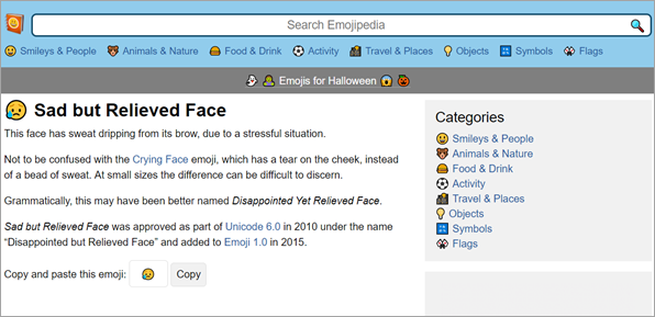 Emojipedia.org is a more powerful emoji library, which is adopted by many other online sources. Visit the site, then enter a term to search in the search bar. All the emojis matching your requirements will be seen as a result. Click the desired emoji and all the details of that particular emoji will appear as how it looks on each platform. Under the description text, a copy button is shown up. Click or tap this copy button to copy the emoji and then paste this in any application or website you are working in.