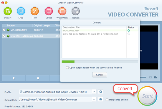 After all the settings are made, click the Start button to begin the conversion. The conversion speed is fast and video quality is nice.