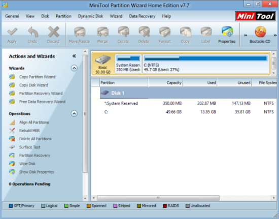 MiniTool Partition Wizard Home Edition is a Windows based server partition manager freeware designed to manager hard disk. By using this powerful tool, users can resize, copy, create, extend, split, delete, format, convert, explore, hide partition and change drive letter. It supports most disk types which include removable storage devices.