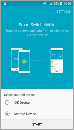 Note: If you’re looking to switch from a non-Samsung device like iPhone, you can use an OTG USB cable to connect iPhone to your Galaxy, or import from iCloud, or use the Smart Switch for PC/Mac to transfer data from iTunes. For more information and step by step directions, go to here.