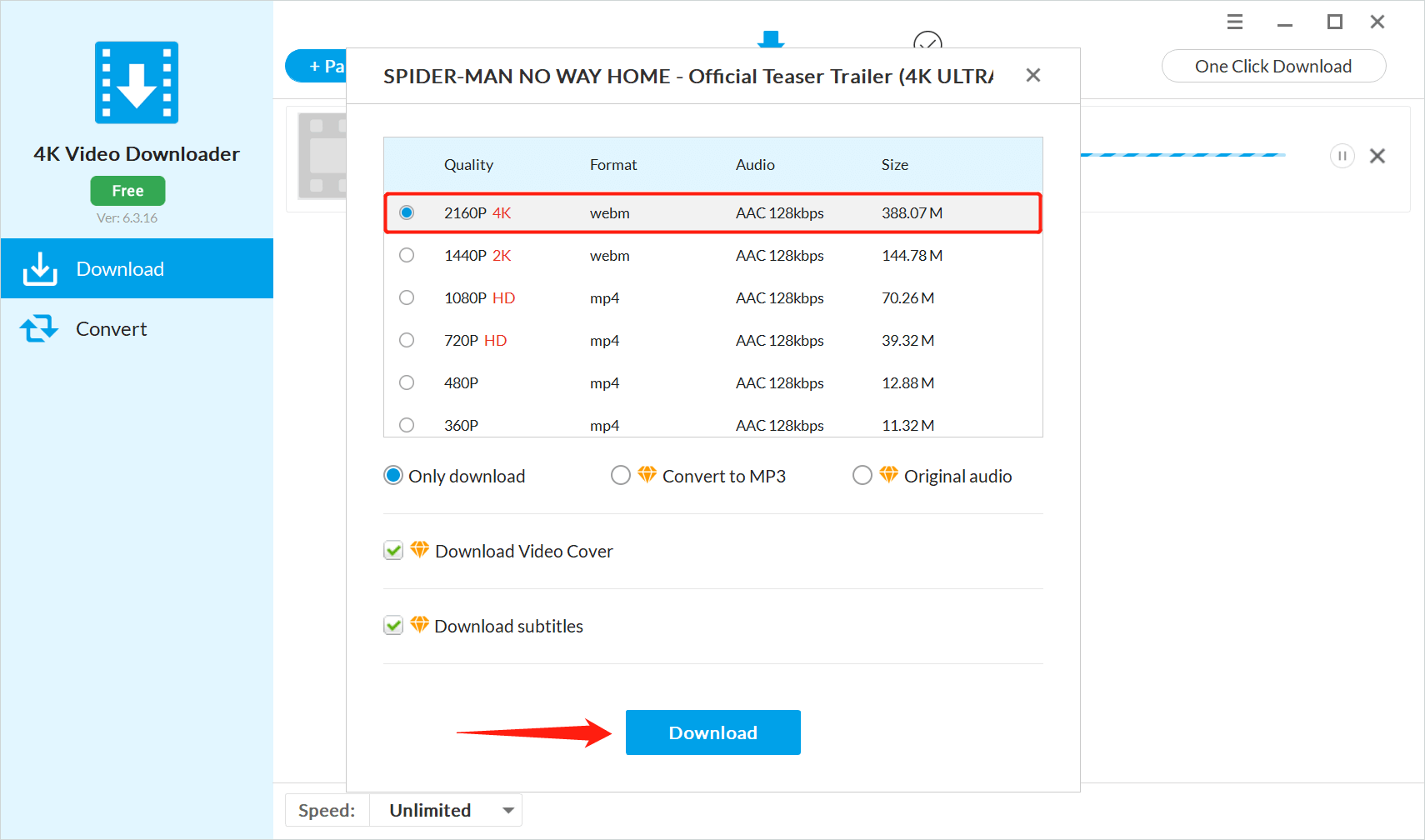 Step 4. Click the “Download” button in the pop-up box to start downloading YouTube videos.