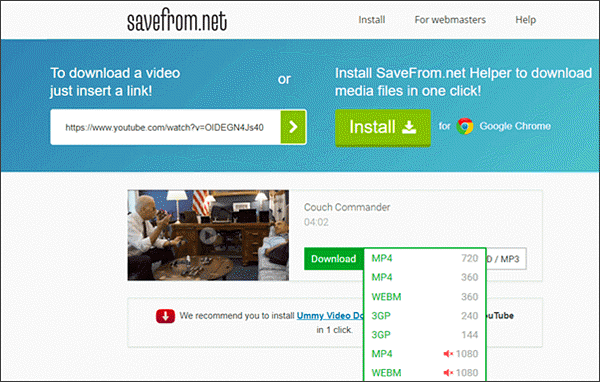 Savefrom.net is a free online video downloader that offers a fast way to grasp videos and music from YouTube and other sites, such as Tumblr, Facebook, DailyMotion, Vimeo, etc. The most significant advantage of this tool is that it can be used directly, so you don’t have to download any software on your computer.