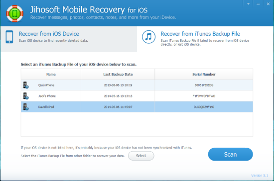 Once deleted data from iPad, or even lost your iPad, you can still find out your data from earlier iTunes backup files. Launch the program and select “Recover from iTunes Backup File”. The following operation is as the same with the previous mode, and you can easily retrieve all lost data.