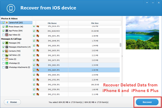 Jihosoft Mobile Recovery for iOS is professional and easy-to-use iPhone 6 data recovery tool. By using this software, users can easily recover contacts, messages, photos, videos, notes, call history, WhatsApp and more from iPhone 6 & iPhone 6 Plus directly. Also, this tool empowers you to retrieve files by extracting data in iTunes backup, provided that you have available iTunes backup. Just download the free trial version of this iPhone 6 Data Recovery and click here to learn the detailed steps to recover lost files from iPhone 6.