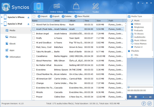SynciOS Manager is a free iTunes alternative to easily manage iPhone, iPad and iPod without iTunes, which offers you ultimate transfer solution between iOS devices and Windows PC. Transfer music from PC to iOS devices will be very easy.