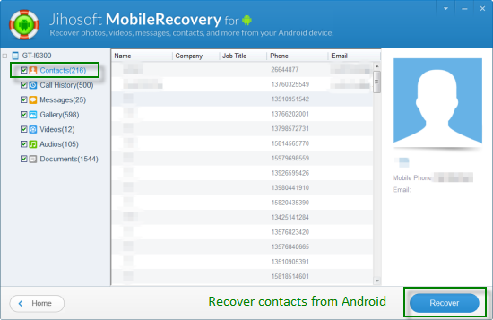 If you haven’t make a backup of your phone contacts, then there is other way which helps you to retrieve Android contacts. You can count on a third-party tool like Jihosoft Android Phone Recovery. With it, you are able to recover contacts from Android phones like Samsung Galaxy S3/S4/S5/S6/S7/S8, Note 2/3/4/5/7, HTC One, LG Optimus, Sony Xperia, Motorola Droid, etc. The program will deeply scan your Android device for deleted or lost contacts. Plus, you are allowed to preview the contact phone number, name, and email in details.