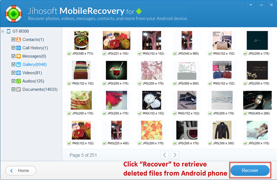 Jihosoft Android Data Recovery (Android Data Recovery for Mac) is professional file recovery software for Android. It can perfectly restore deleted files on Android, including photos, videos, audios, text messages, contacts, call logs and many other documents. Here, let’s take the Windows version as an example to show how to recover lost files from Android step by step.
