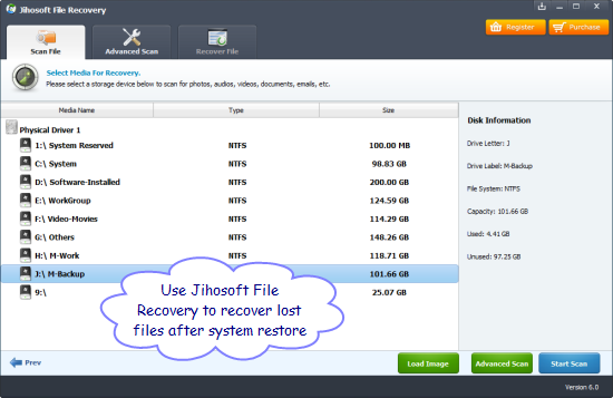 It’s very often computer system crash and we have to restore our computer to factory settings, but unexpectedly lose important files. Don’t worry. Just calm down and stop using your computer or writing any new data into it. Then use suitable data recovery software such as Jihosoft File Recovery to recover lost files after system restore.