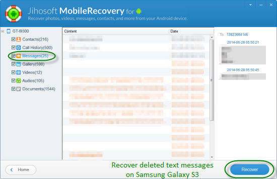 It is rather dismay when you deleted important messages by accident, but don’t worry, there are still chances for you to get back all the deleted messages from Galaxy S3. I know an application named Jihosoft Android Phone Recovery which allows you to recover SMS, contacts, photos and videos from all Samsung devices, like Samsung Galaxy S3/S4/S5/S6/S7/S8, Note 2/3/4/5/7, etc. With the help of this program, you can easily recover deleted text messages from Galaxy S3. Just have a free try now.