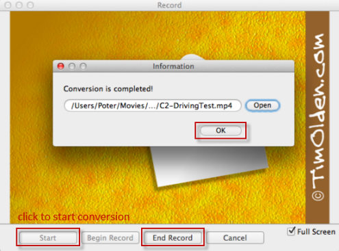 Click “Capture” to enter into the Record window. Then click “Start” to begin the conversion of SWF to video on Mac OS X.