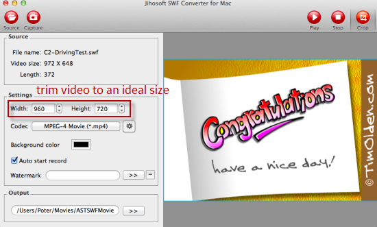 Set the “Width” and “Heigh” to trim the imported SWF video to an ideal size.