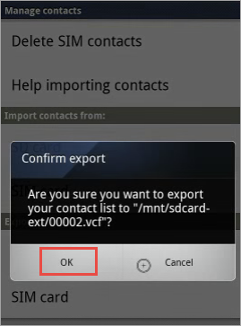 2. Select export contacts to SD card or USB storage and press “OK” to confirm.