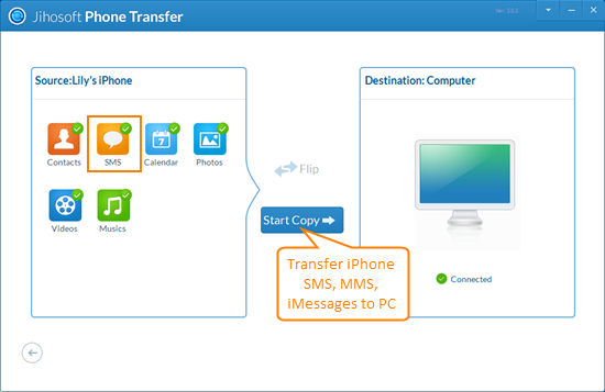 Jihosoft iPhone Transfer, an all-in-one mobile transfer tool, offers a simple and powerful way to transfer text messages from iPhone to computer and save them in HTML format for easy viewing and printing. It works for any type of iPhone message such as SMS, MMS, or iMessages and with any iOS device such as the latest iPhone 6s/6s Plus/5se, iPad Pro/Air 3, etc. Just download and install the software on your computer and follow the steps below to get started.