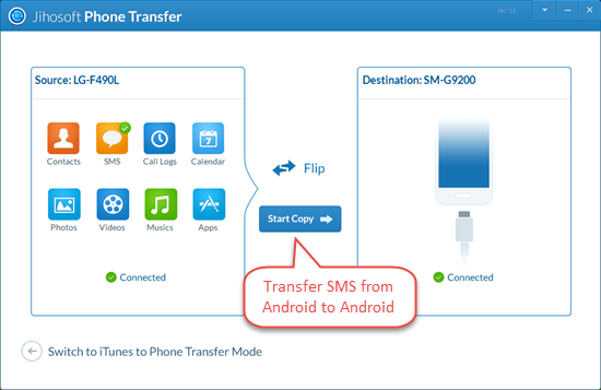 To transfer SMS from Android to Android, here Jihosoft Android SMS Transfer is highly recommended. It is a professional as well as simple-to-use tool that allows you copy SMS from Android to Android within few simple clicks. More than a SMS transfer tool, it also lets you transfer contacts, call logs, photos, videos, music and more from Android to Android as you needs.