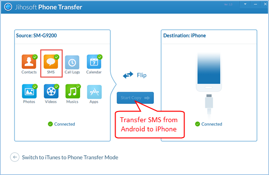 Jihosoft Phone Transfer is a powerful application that enables you to transfer text messages from Android to iPhone with just a few mouse clicks. It works perfectly with all iPhone and Android devices. No matter you used a Samsung, HTC, LG, or Sony Xperia, this software will always meet your need to copy messages to your iPhone 5/5S/6/6 Plus/6S/6S Plus. Besides messages, Jihosoft Phone Transfer lets you transfer contacts, calendar, photos, videos, music and other data between Android and iPhone.