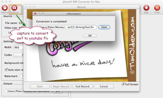 Click the “Capture” icon to open the flash recording window. Start the flash conversion process by hitting “Start”->“Begin Record” and stop the conversion by clicking “End Record”. After the conversion, log in to your YouTube account, and you will be able to upload the converted SWF to YouTube freely.