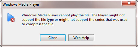 “Windows Media Player cannot play the file. The Player might not support the file type or might not support the codec that was used to compress the file.”